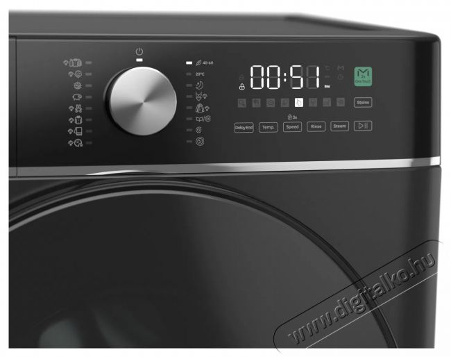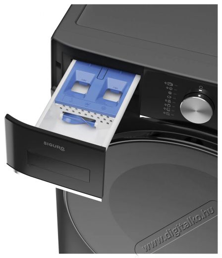 A Siguro Steam Pro F102DS előtöltős mosógép kezelése nagyon egyszerű, köszönhetően a mosási program kiválasztására szolgáló forgótárcsa, az érintőgombok és a LED-es információs kijelző kombinációjának köszönhetően. Természetesen van egy gyermekzár, amely lezárja a kezelőpanelt, és megakadályozza a beállítások megváltoztatását. Emellett rendelkezésre áll egy késleltetett mosás befejezése funkció is, amely akár 24 órára is beállítható. Biztosan értékelni fogod a mosás befejezését jelző hangjelzést (kikapcsolható).