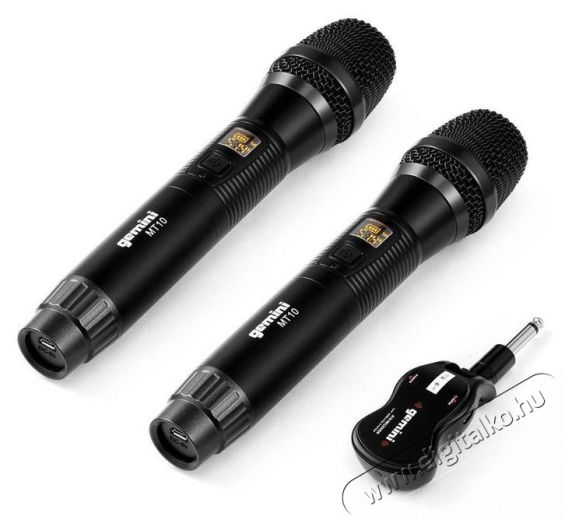 Gemini GMU-M200A Gemini GMU-M200 vezeték nélküli UHF rendszer két kézi dinamikus mikrofonból és egy vezeték nélküli vevőegységből áll, 1/4" -es csatlakozással . Ez egy bővíthető Plug & Play rendszer, amely biztosítja, hogy a hang mindig tisztán hallható legyen 50 méteres távolságig. Elég csak csatlakoztatni a rádióerősítőt hangszóróhoz vagy más eszközhöz, és automatikusan csatlakozni fog a mikrofonhoz. A Gemini GMU rendszer előnye, hogy képes egy jelet egyszerre több vevőre küldeni, és akár hat párosított eszközt is támogathat jel interferencia nélkül. Mind a mikrofon, mind az R10 vevő lítium akkumulátorral van felszerelve, melyeket a mellékelt USB-kábellel lehet újratölteni. A mikrofonok LED kijelzővel rendelkeznek, amely az akkumulátor töltöttségi állapotát és a kiválasztott frekvenciát mutatja.
