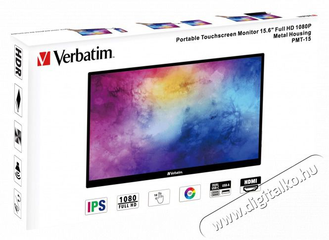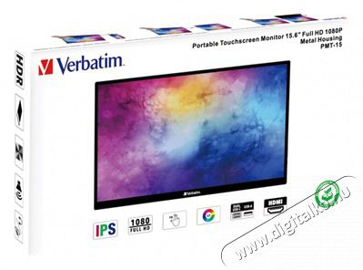 A Verbatim PMT-15 monitor Full HD felbontással és 16:9 képaránnyal rendelkezik. A képminőséget érezhetően javítja az IPS technológia, amely élesebb és pontosabb képeket és széles betekintési szögeket biztosít. A beépített dönthető állvány lehetővé teszi, hogy a Verbatim-monitort pontosan a saját magad számára megfelelő szögbe és pozícióba dönthesd.