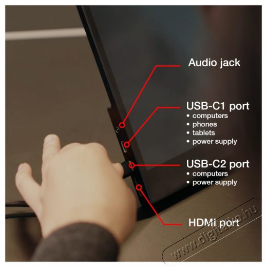 A Verbatim PMT-15 hordozható kijelző alapfelszereltségként USB-C-n keresztül csatlakozik, ami azt jelenti, hogy a tápellátás, az adatok és a videó egyetlen kábelen keresztül érkezik. Csak csatlakoztasd alaptopodhoz, Mac számítógépedhez, tabletedhez, telefonodhoz vagy konzolodhoz, és máris kezdheted a képernyő megosztását. Ha HDMI csatlakozásra isszükséged van, a csomagban HDMI kábelt is találsz. HDMI kábel használata esetén azonban a mellékelt külső tápegységet kell használnod.