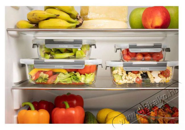 Siguro üveg vákuumdoboz Az élelmiszerek tárolása és szállítása még soha nem volt olyan egyszerű, mint a Siguro termékekkel. A Siguro vákuumos üvegedény légmentesen záródó tetővel és szilikon tömítéssel nemcsak az ételek egyszerű tárolását teszi lehetővé a hűtőben vagy a fagyasztóban, hanem a mikrohullámú sütőben történő későbbi felmelegítést is. A Siguro edény rendkívül tartós boroszilikát üvegből készült, és akár sütőedényként is használható. A szilikon tömítéssel ellátott, felpattintható műanyag tető tökéletesen megakadályozza a tartalom kifolyását, megvédi az ételt a közvetlen fagytól, segít hosszabb ideig frissen tartani, és megőrzi friss illatát és ízét. A tetőn egy szelepet is találsz a felesleges levegő elszívására, aminek köszönhetően tovább maradnak frissek és fogyaszthatók a dobozban tárolt élelmiszerek, valamint nyersanyagok.