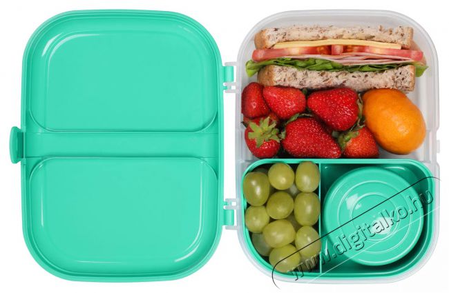 A rágcsálnivalók gazdagítják a napot, ami tele van energiával és ízekkel. A jól ismert SISTEMA uzsonnás doboz időt és pénzt spórol, és mindenekelőtt lehetőséget biztosít az étkezésre, bárhol is legyél. Praktikus kialakításával és kapacitásával a kellően nagy 1,1 l térfogat bőséges helyet kínál a kedvenc finomságoknak. Gyártási anyaga műanyag. A praktikus belső elrendezés nagyon előnyös. A rekeszeket úgy tervezték, hogy különböző élelmiszerek, például gyümölcsök, vágott zöldségek, energiaszeletek vagy bármi más tárolására is alkalmasak legyenek. Belső elemei állíthatóak és eltávolíthatóak. Az uzsonnásdobozt még a magas hőmérséklet sem zavarja, amely lehetővé teszi az ételek mikrohullámú sütőben történő melegítését. Használat után könnyen elmosogatható a mosogatógépben. A fedélen lévő klipszek tökéletesen lezárják a dobozt.