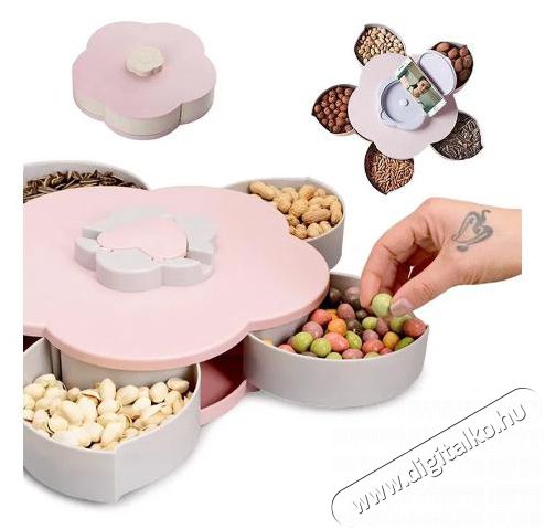 Tálaló készlet - virág forma, 5 tárolószekció, élelmiszerhez, ékszerekhez vagy egyéb csecsebecsékhez, csúszásgátlós lábak, mérete S, 5 × 25 cm.