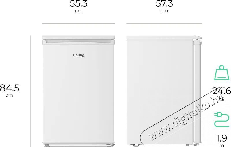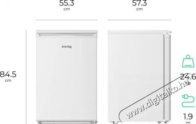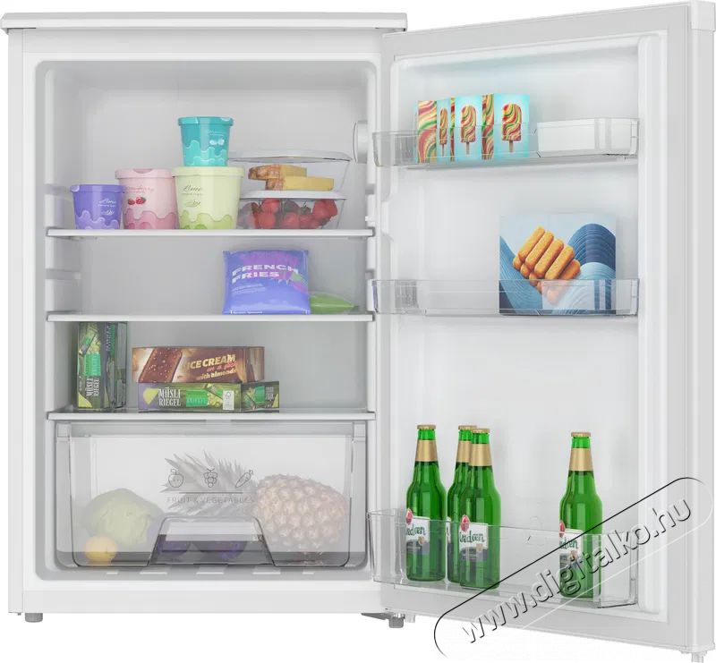 Siguro TT-D241W Essentials kis hűtőszekrény A kompakt, csendes és gazdaságos Siguro TT-D241W Essentials hűtőszekrény 131 literes hasznos térfogattal, praktikus belső elrendezéssel, LED-világítással, szuper hűtéssel és egyszerű digitális vezérléssel rendelkezik. A hűtőszekrény évente 72 kWh-t fogyaszt, és a D energiaosztályba tartozik. Legyen szó otthoni, nyaralói vagy irodai használatról, a hűtőszekrény jelenlétét alig fogod észrevenni – a kompresszor ugyanis nemcsak megbízható, hanem rendkívül halk is.