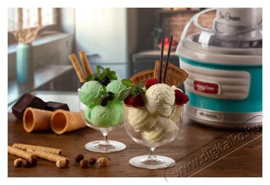 Készítsd el a jégkrémet akár 30 perc alattA házi készítésű fagylalt készítése az Ariete Party Time 643-as készülékkel egyszerű és szórakoztató. Csak válaszd ki a hozzávalókat ízlésed szerint, legyen az tej, tejszín, friss gyümölcs vagy akár egy fagylaltkeverék, amelyet megvásárolhatsz. A keveréket közvetlenül a fagyigépbe öntsd, és ne feledkezz meg egy apró trükkről sem: a hűtőtálat 24 órára a fagyasztóba kell tenni, hogy a fagylalt igazán hideg és tökéletes legyen. Előkészítés után csak nyomd meg a gombot, és hagyd dolgozni a készüléket. A folyamat során fokozatosan további ízletes hozzávalókat adhatsz hozzá, mint például aszalt gyümölcs, cukorka vagy dió, hogy ropogós maradjon a finomság. Mindössze 30 perc alatt friss és finom fagylaltot készíthetsz, amely bármilyen alkalomra remek frissítő.