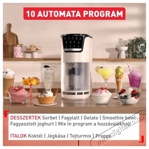 6 fagylaltkészítő program (sorbet, fagylalt, gelato, smoothie bowl, fagyasztott joghurt és a Mix in program), valamint 4 frissítő italokhoz tervezett funkció (koktél, jégkása, shake és frappé).