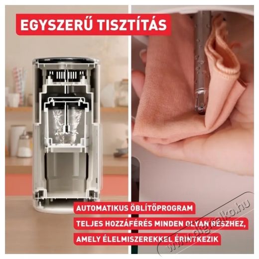 Az automatikus öblítőprogram és a minden, élelmiszerrel érintkező részhez való teljes hozzáférés a lehető legkönnyebbé teszi a tisztítást.