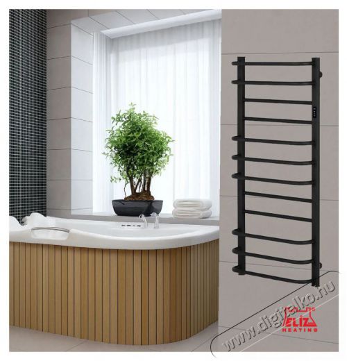 Az ELÍZ EBS 12/55 AF-B Wi-Fi-s modell egy létra kialakítású elektromos törölközőszárító 12 keresztrúddal, matt fekete színben. Csendes működésének köszönhetően bármely otthonba illik. Praktikus megoldást kínál a törölközők szárításához vízbekötés nélkül, 229 W teljesítménnyel. A vezérlést elektronikus kezelőfelület és a Tuya Smart mobilalkalmazás biztosítja. A készülék megfelel az energiahatékonysági követelményeknek, beépített fűtőszállal, 1,2 m-es tápkábellel (230 V) és szerelőkonzolokkal van felszerelve.
