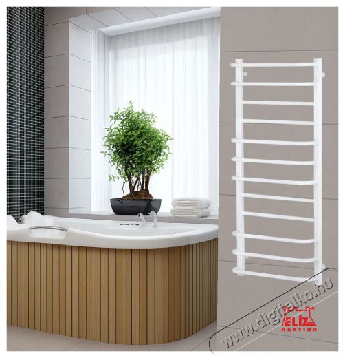 Az ELÍZ EBS 12/55 AF-W modellt modern létra kialakítással tervezték, 12 keresztrúddal. A fényes fehér felület könnyen illeszkedik a modern fürdőszobákba. A szimmetrikus forma praktikus a mindennapi használathoz, és elegendő helyet biztosít törölközők vagy konyharuhák számára. A kezelés egyszerű – mechanikus szabályozóval. A szárító falra szerelhető, és a szükséges tartozékok a csomag részét képezik.