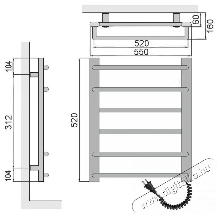 Elegáns kialakítású elektromos törölközőszárító