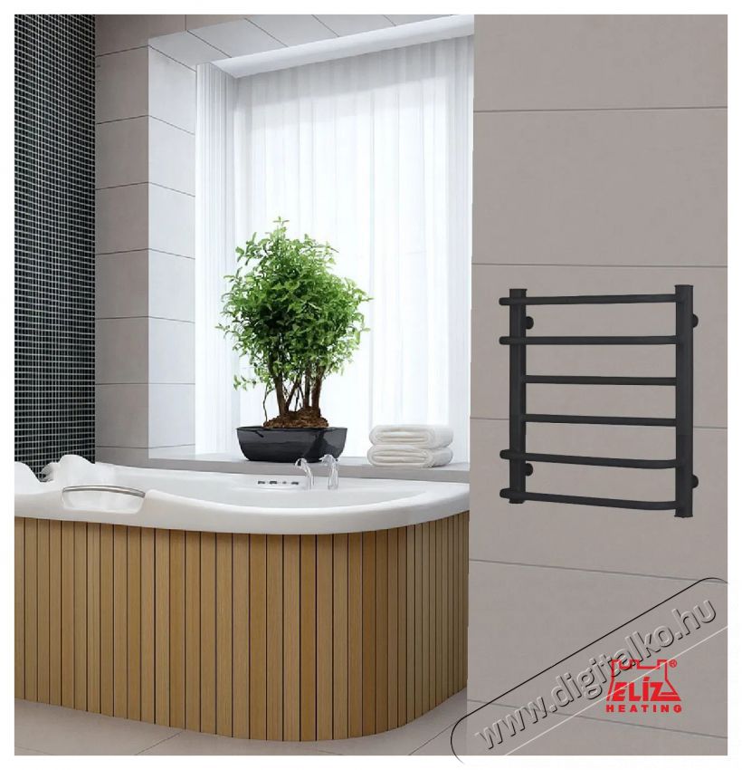 Az ELÍZ EBS 6/55 AF-B modellt modern létra kialakítással tervezték, 6 keresztrúddal. A matt fekete felület könnyen illeszkedik a modern fürdőszobákhoz. Szimmetrikus formája praktikus a mindennapi használathoz, és elegendő helyet biztosít törölközők vagy konyharuhák számára. A kezelése egyszerű egy mechanikus szabályozóval történik. A szárító falra szerelhető, és a szükséges tartozékok a csomag részét képezik.