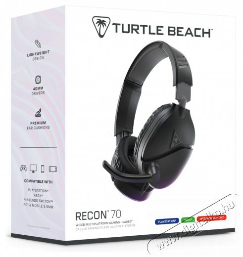 A Turtle Beach® Recon 70 többplatformos gamer fejhallgató, amelyet a következő győzelmére, legújabb teljesítményére és még sok másra terveztek.