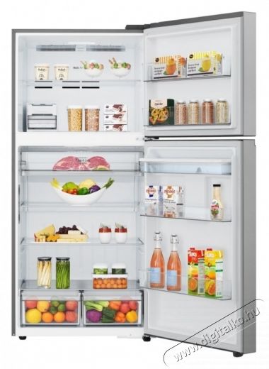 Az LG DoorCooling+™ egyenletesebbé teszi a belső hőmérsékletet, és 35%-kal gyorsabb hűtést tesz lehetővé, mint a hagyományos hűtőrendszerek. Jelentősen csökkenti a polcok és az ajtó rekeszei közötti hőmérséklet-különbséget.