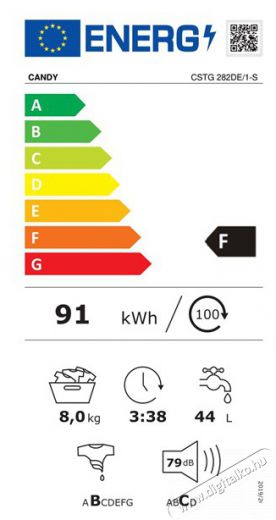 Energiafogyasztás 100 ciklusonként 91 kWh