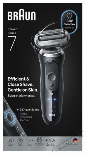 Braun Series 7 Wet&Dry 72-N1620S borotvaTökéletesen sima borotválkozásra vágysz? Akkor itt a Braun Series 7 Wet&Dry 72-N1620S borotva. A hagyományos borotvákkal összehasonlítva sokkal kevesebb húzással érhetsz el tökéletes és precíz borotválkozást. A készülék három éles, rugalmas acélpengével rendelkezik, amelyek pillanatok alatt garantálják a pontos és hatékony formázást. A két penge biztosítja a sima borotválkozást, a középső vágófej pedig eléri a nehezen hozzáférhetőszőrszálakat is. A borotva így könnyedén megbirkózik mind a finom, mind a sűrű, makacs szőrzettel. A SensoAdapt technológiával elemzi a szakáll sűrűségét és automatikusan szabályozza a motor teljesítményét. A SkinGuard védi a bőrt a sérülésektől és irritációtól. A 360°-os SkinFlex fejnek köszönhetően a Braun Series 7 borotva tökéletesen alkalmazkodik az arcod kontúrjaihoz. A nagy teljesítményű akkumulátor akár 60 perces vezeték nélküli használatot biztosít. A Braun Series 7 borotva vízálló, nedves ésszáraz használatra egyaránt alkalmas. Élvezd az otthon kényelmében a szalonminőségű szakállformázást a Braun Series 7 Wet&Dry borotvával.