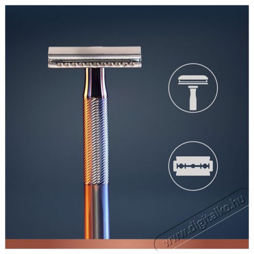 Tulajdonságok: - A biztonsági rögzítés a helyén tartja a kétélű (DE) borotvafejet