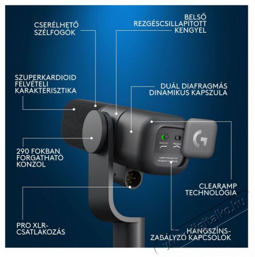 Ha szeretsz énekelni, blogolni vagy más módon hangfelvétellel dolgozni, szükséged lesz egy mikrofonra, hogy segítőd legyen. E nagyszerű Logitech G Blue Yeti Studio, fekete mikrofon dinamikus elven működik. Ezzel az univerzális típussal nem fogsz tévedni, mert szinte bármilyen hang rögzítésére alkalmas, beleértve az éneklést is. Ebben az esetben egy asztali változatról van szó, amely a számítógép mikrofonjaként használható. Fontos kiválasztási paraméter az iránykarakterisztika, amely meghatározza, hogy a készülék mely irányokból érzékeli a hangot, és mely irányokból nem. E nagyszerű BLUE MICROPHONES mikrofon ideális, ha a mikrofont egyedül használod, például moderálás, vlogolás, streaming során. A mikrofon előtt lévő hangot rögzíti, miközben elnyomja a körülötte lévő hangokat. A mikrofon frekvenciatartománya 40 - 18000 Hz. XLR segítségével csatlakoztatható.