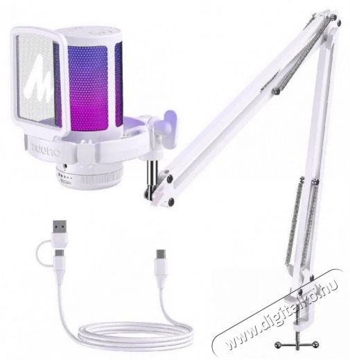 MAONO DGM20S kardioid iránykarakterisztikávalA mikrofont egy praktikus ollós kar egészíti ki. Lehetővé teszi, hogy a mikrofont közelebb vidd a szádhoz. Segítségével kényelmesebben folytathatsz beszélgetéseket. Csatlakoztasd a PC-hez vagy laptophoz az USB-C porton keresztül. A csomagban egy USB-C-ről USB-A/USB-C-re átalakító csatlakozóval ellátott kábelt találsz. A kardioid karakterisztika elnyomja a mikrofon hátuljáról érkező hangokat. Az eredményül kapott hang mély basszusokkal és erőteljes magasakkal rendelkezik az állandó érzékenységnek köszönhetően a teljes frekvenciatartományban. Az érzékenység kényelmesen állítható a tekerőgomb segítségével. Van egy gomb magának a mikrofonnak a gyors elnémítására (MUTE) és egy másik az ENC üzemmód ki/be kapcsolására.