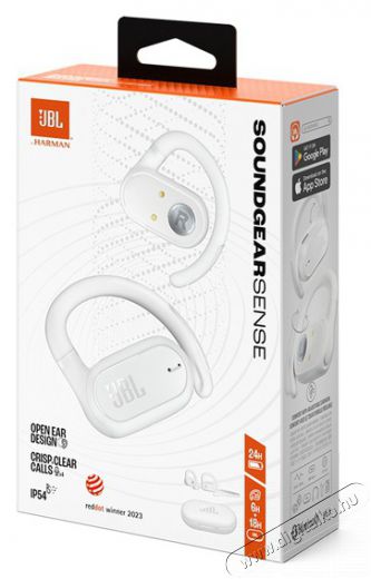 A fehér színű JBL Soundgear Sense vezeték nélküli fülhallgató főbb jellemzői:
