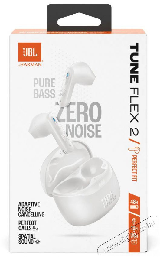 -     Eme JBL Tune Flex 2 fehér akkumulátorának funkcionálási ideje akár 48 óra
