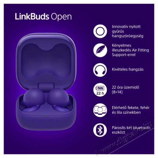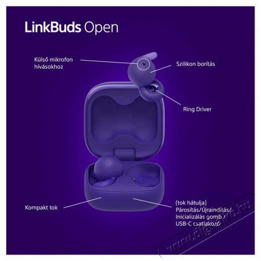 Sony Linkbuds Open - szuper kicsi, könnyű és kényelmes True Wireless fejhallgatóA Sony bemutatja az extra kicsi, könnyű és kényelmes LinkBuds Open fejhallgatót. Meglep téged nagyon könnyű, de mégis minőségi felépítésével. Bár kompakt méretű, 11 mm-es meghajtót tartalmaz, és a hagyományos fülpárnához képest a Sony LinkBuds védőfelülete, ami a membránt fedi, közvetlenül a tokba van integrálva. A True Wireless fülhallgatót úgy tervezték, hogy pontosan illeszkedjen az emberi fülhöz. Ergonomikus kialakításának köszönhetően jobban tart a füledben az új légpárnás betétnek köszönhetően. A fejhallgató akár 22 órás akkumulátor-üzemidőt biztosít, ha a töltőtokkal együtt használod. A Sony LinkBuds beépített mikrofonnal rendelkezik a minőségi telefonhívások kényelmes kezeléséhez, és természetesen az Alexa és a Google Assistant hangasszisztensekkel való kényelmes együttműködéshez. A megbízható kapcsolatot a Bluetooth 5.3 technológia biztosítja az SBC, AAC kodekek támogatásával.