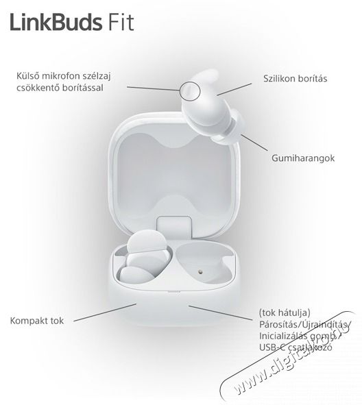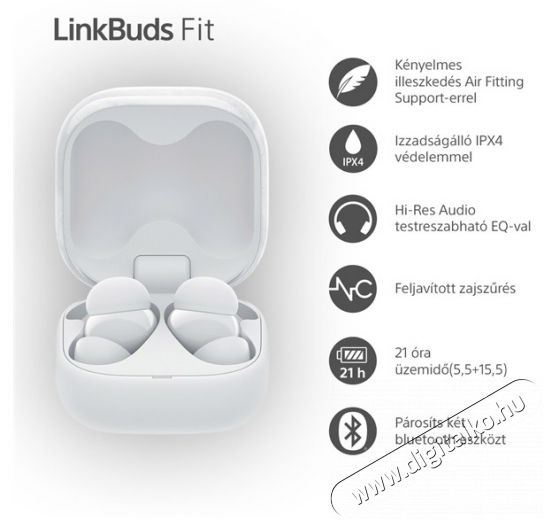- Ezen Sony Noise Cancelling LinkBuds Fit, fehér akkujának funkcionálási ideje akár 21 óra