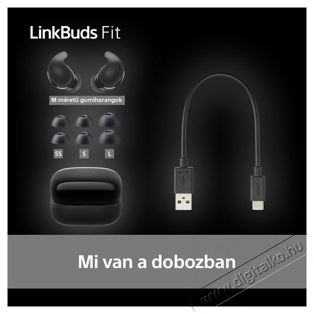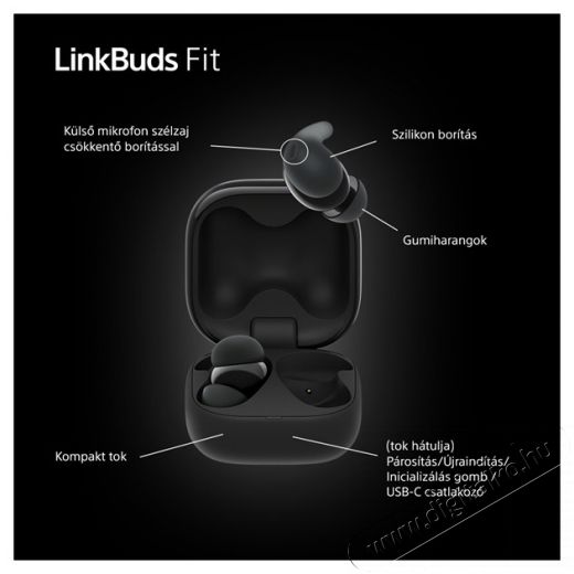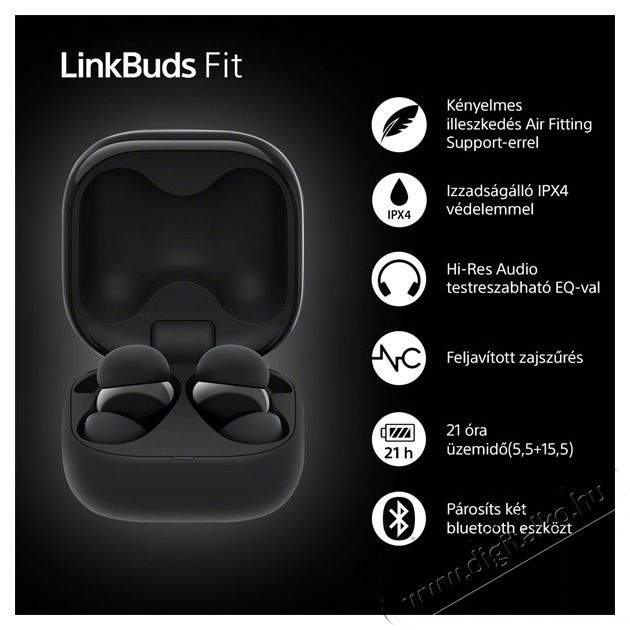 - Ezen Sony Noise Cancelling LinkBuds Fit, fekete akkujának funkcionálási ideje akár 21 óra