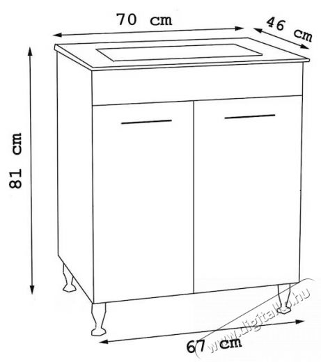 A szekrénydoboz forgácslapból, az ajtópanelek pedig festett forgácslapból készülnek. Az oldalak és az ajtók vastagsága 16 mm.