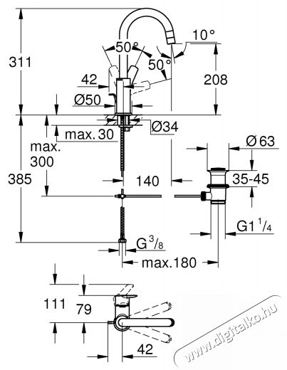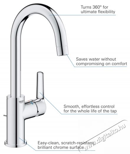 Grohe 24203002 Start OHM egykaros mosdócsaptelep, J kivitel, forgatható kifolyócső, L méret, króm (24203002)