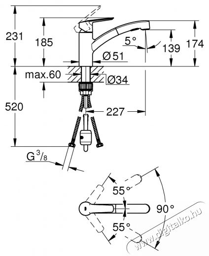 • váltógomb: normál kifolyás / SpeedClean zuhany
