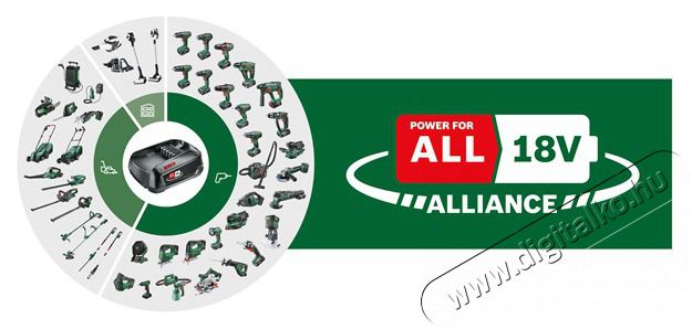 Bosch POWER FOR ALL akkus rendszer Fúráshoz, takarításhoz és kertészkedéshez. Gyors és egyszerű váltás a különböző készülékek között a Bosch 18 V-os POWER FOR ALL akkumulátorával. A még nagyobb rugalmasságért az akkumulátor a POWER FOR ALL akkumulátort használó egyéb szerszámokhoz is használható.