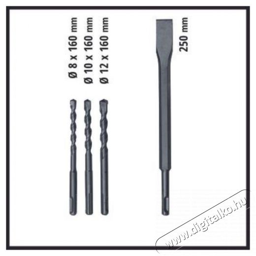 - 3 db fúrószárral (O 8, 10, 12 mm) és laposvésővel