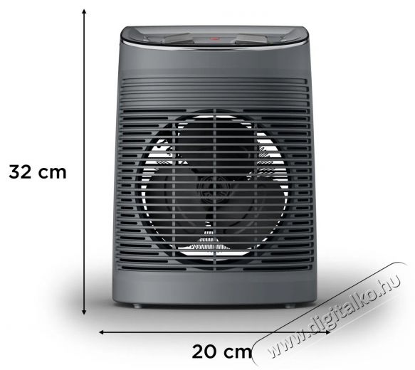 Könnyen szállítható és tárolhatóA hősugárzó ventilátor kompakt mérete és ergonomikus hordozófogantyúja megkönnyíti a kezelést. Kis méretének köszönhetően a készülék kompakt és kevés helyet foglal.