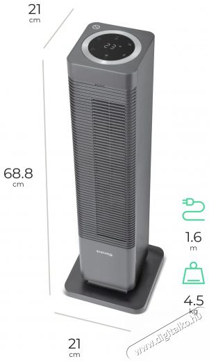 A hősugárzó ventilátor közvetlenül a készülék testén található érintőkapcsolókkal vezérelhető. De a mellékelt távirányítót (CR2032 elem tartozék) is használhatod. Egy másik lehetőség, ha letöltöd a TUYA Smart mobilalkalmazást a telefonodra. Nagyra fogod értékelni, hogy a Siguro HS-R450Y Reindeer Hot & Cool hősugárzó ventilátor beépített tartóval van felszerelve a távirányító tárolására, illetve a háttérvilágítású kijelzőt, hogy tökéletesen áttekinthesd a hőmérsékletet és az egyéb beállításokat.