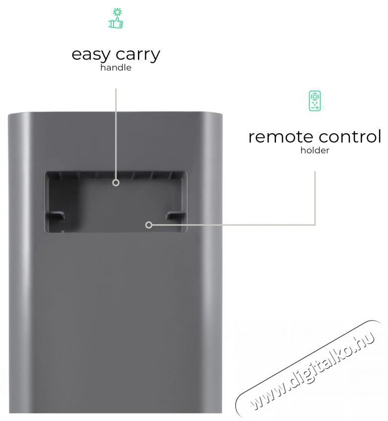 A ventilátor testében egy külön hely található a távirányító tárolására.