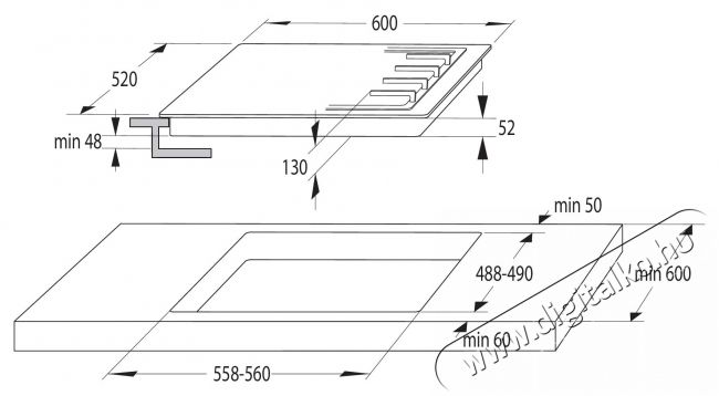 - A kifinomult GORENJE főzőlap mérete: 13 × 60 × 52 cm (ma×szé×mé)