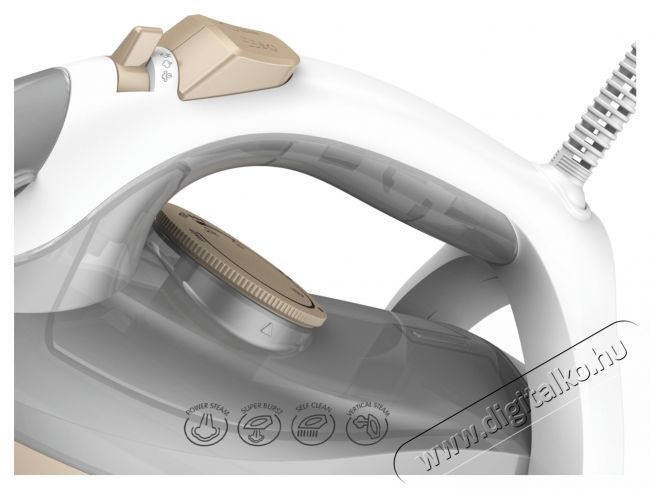 A vasaló integrált vízkőmentesítő rendszerrel rendelkezik, amely egy speciális, a víztartályban elhelyezett szűrőre épül. Ez lágyítja a vizet és megakadályozza a vízkő lerakódását a talpon, hozzájárulva a tartós teljesítményhez és a hosszabb élettartamhoz. A szűrő állandó jellegű, nem igényel cserét, így gondtalan használatot és egyenletes eredményeket biztosít minden vasalás során.