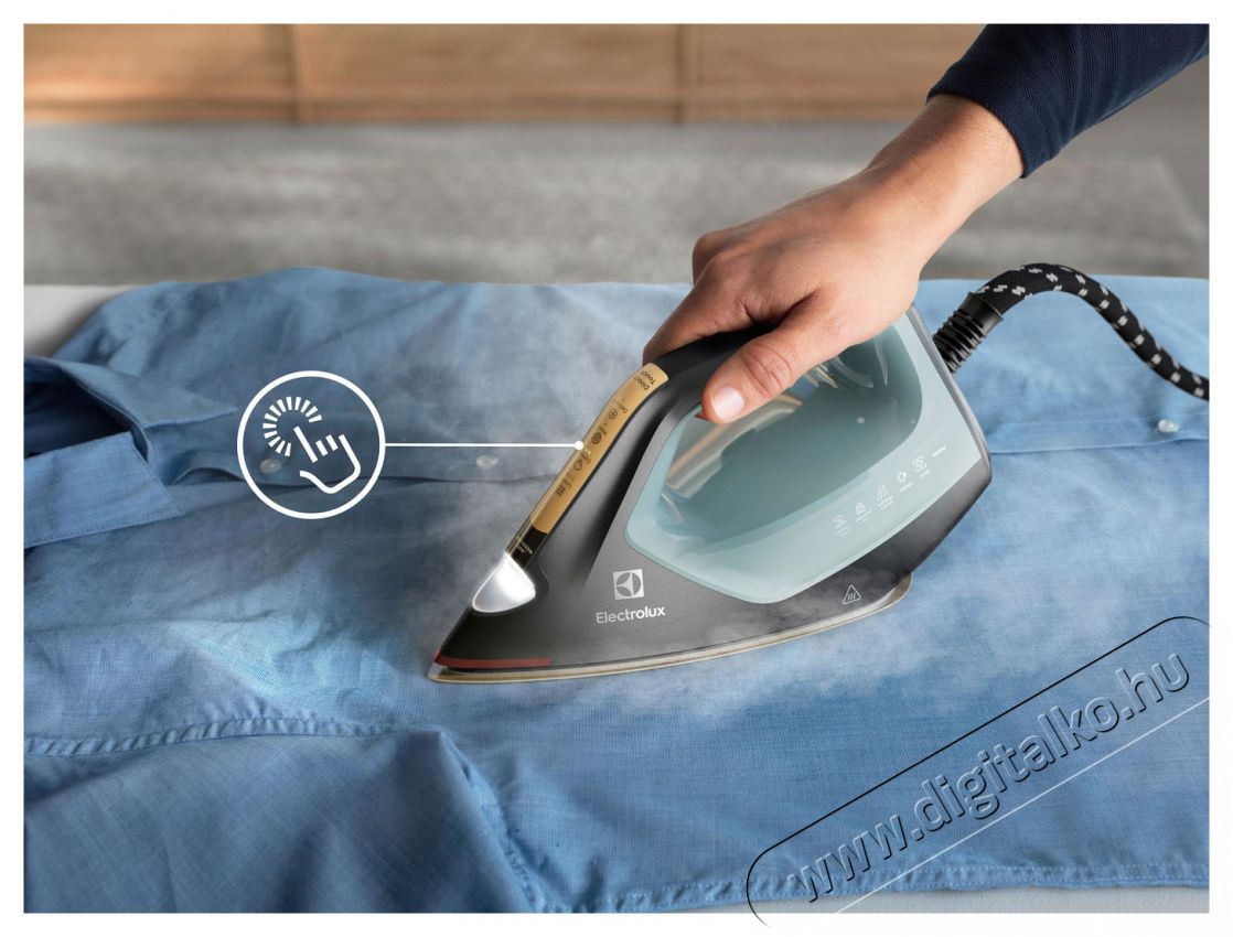 | Funkcionális elemek vasaláshoz | Automatikus hőmérséklet beállítás, Függőleges gőzölés, Gyorsmelegítés |