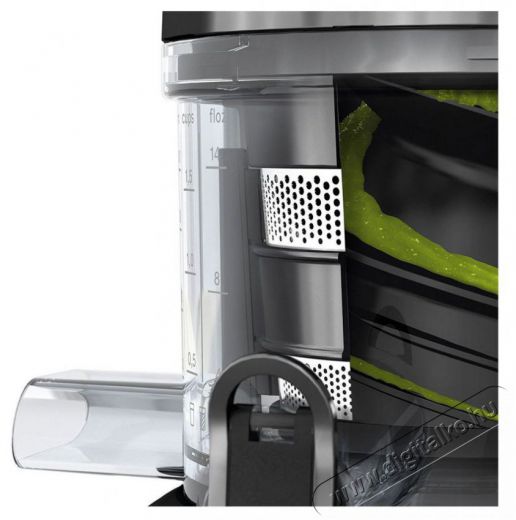 A gyümölcspréshez tartozik egy 1 literes gyümölcslé tartály valamint egy másik, 1,3 literes tartály a hulladék számára. A tisztítást megkönnyíti gumi spatula, amellyel a tartályok egyszerűen tisztán tarthatók. Az eltávolítható részek mosogatógépben is moshatók. A konyha tisztántartásához pedig a csepegésgátló rendszer járul hozzá.