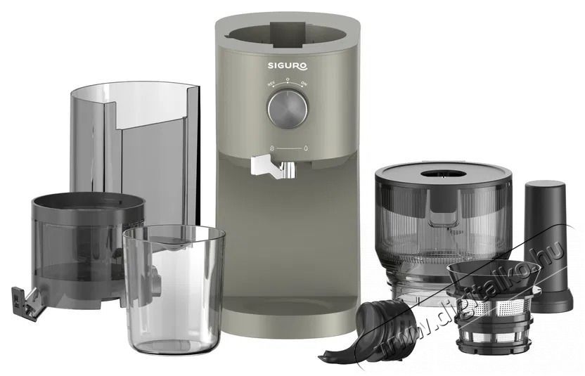 Siguro SJ-P500DY Juice Pure Press gyümölcsprésEz a gyümölcsprés ideális választás mindenkinek, aki otthon szeretne friss és tápláló gyümölcs- vagy zöldséglevet készíteni tartósítószerek nélkül, bármikor, amikor csak eszébe jut. A lassú préselési technológiának köszönhetően, amely percenként 60 fordulattal működik, kíméletesen nyeri ki a maximális levet felesleges felmelegedés nélkül. Az eredmény egy tiszta és finom ital, tele ízzel és vitaminokkal. A Siguro SJ-P500DY Juice Pure Press nagy betöltőnyílással (130 mm) és 0,6 literes légtartállyal rendelkezik. Minden alkatrész könnyen szétszerelhető és elmosható, némelyikmosogatógépben is. Így bármikor élvezheted a házi készítésű gyümölcslevet, anélkül, hogy utána hosszasan kellene tisztítanod a készüléket.