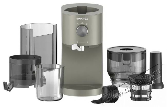 A kezelés egyszerű, egy forgógombbal történik, amely három fokozattal rendelkezik – kikapcsolás, bekapcsolás és visszafelé forgás a beszorult alapanyagok kiszabadításához. A Siguro SJ-P500DY Juice Pure Press gyümölcsprés alacsony fordulatszámú, de mégis erőteljes 100 W-os motorral van felszerelve, amely csendes működésű és hosszú élettartamú.