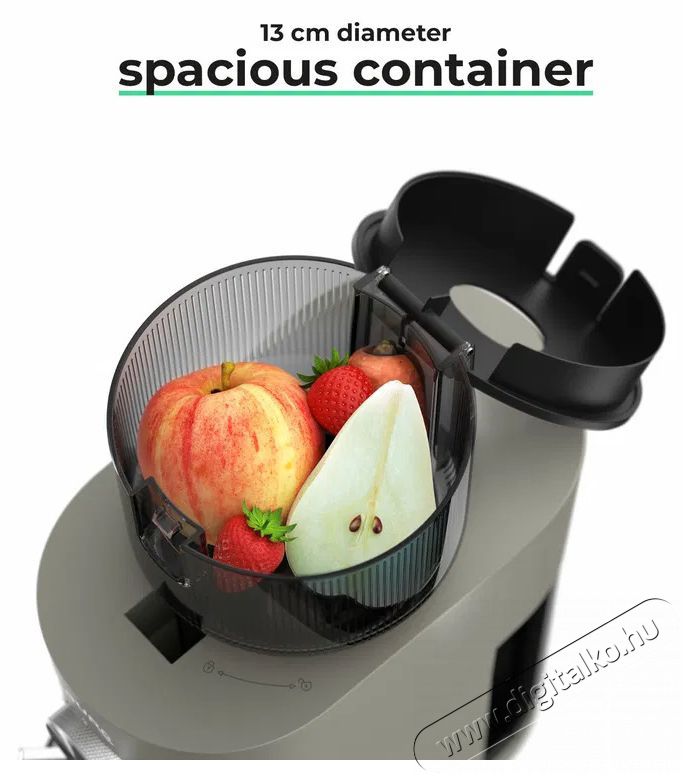 A 130 mm átmérőjű és 44 mm magasságú betöltőnyílásnak köszönhetően könnyen belehelyezhetsz nagyobb darabokat, vagy akár egész gyümölcsöket és zöldségeket is – például almát, körtét, narancsot vagy epret. Így nem kell időt veszítened az alapanyagok kis darabokra vágásával, ami jelentősen időt takarít meg és megkönnyíti a Siguro SJ-P500DY Juice Pure Press gyümölcsprés mindennapi használatát. Akár gyümölcsös smoothie-t, akár zöldséglevet készítesz.