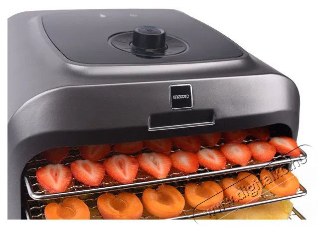 Maxxo INFRA DRY+Az aszalt ételek egyre nagyobb népszerűségnek örvendenek. Ne maradj ki Te sem ebből a trendből és szerezd meg a Maxxo INFRA DRY+ infravörös gyümölcsaszalót, amely gondoskodik arról, hogy az aszalt ételek megőrizzék a színüket és ízüket a test számára jótékony hatású tápanyagtartalommal együtt. Az aszaló 5 tálcával érkezik, amelyen egyenletesen és kíméletesen aszalhatod a zöldségeket, gyümölcsöket, gombákat vagy a húst. Az aszalási időt a jól olvasható kijelzőn tekintheted meg. A Maxxo INFRA DRY+ aszaló automatikus kikapcsolás funkcióval rendelkezik, működése pedig igazán csendes. Az infravörös fényt kikapcsolhatod, így használhatod a forró levegős aszalást is.