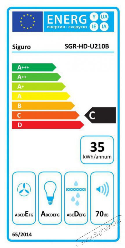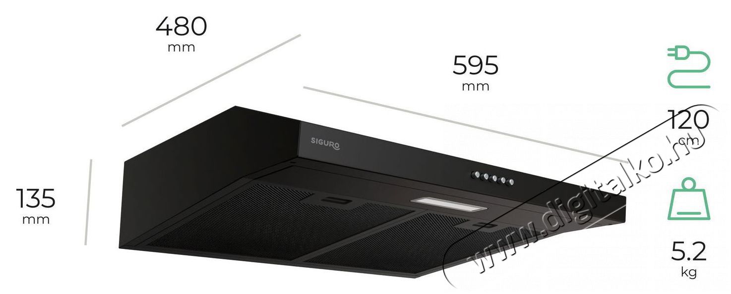 A 60 cm széles Siguro HD-U210B Under Hood páraelszívót a levegő maximálisan hatékony szűrése érdekében két háromrétegű zsírszűrővel és egy szénszűrővel is ellátták. Előny, hogy a zsírszűrők könnyen eltávolíthatók és mosogatógépben, legfeljebb 65 °C-os hőmérsékleten, biztonságosan moshatók. A készülék 1,2 méteres tápkábellel és villásdugóval rendelkezik.