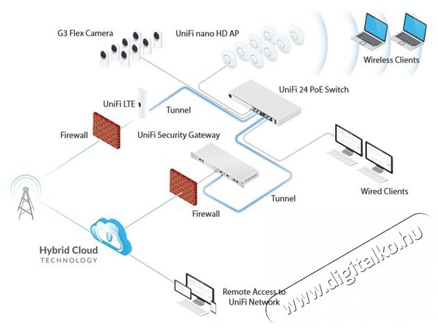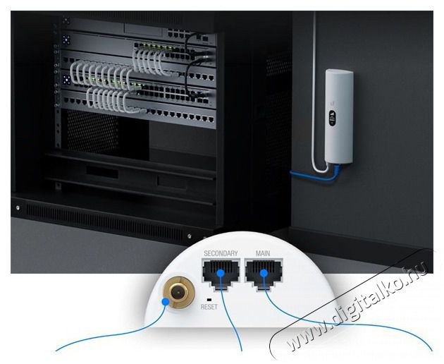 • Az Ubiquiti UniFi U-Lte-Pro LTE (Cat 4) és 2× GbE RJ-45 csatlakozóval rendelkezi