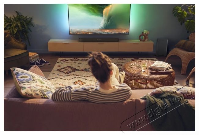 A DTS Virtual:X-szel való kompatibilitásnak köszönhetően átalakul a TV hangja, így virtuális 3D-s hangélményt nyújt függetlenül attól, hogy mi van a képernyőn! Nincs szükség további hangszórókra, és bármilyen helyiségben használható: kapcsolja be a soundbar hangsugárzó távvezérlőjével vagy a Philips Home Entertainment alkalmazáson keresztül.