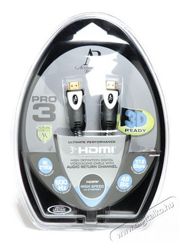 PR4384 0,9 méteres PRO3 HDMI kábel Van a HDMI. És van az Acoustic Research PRO3 HDMI kábelének összehasonlíthatatlan teljesítménye. Az eredmény: kép és hangminőség, amely a legmagasabb HDMI követelményeknek is megfelel. A PRO3 kábelek ideálisak a ma és az eljövendő korok legmagasabb szintű készülékeihez.