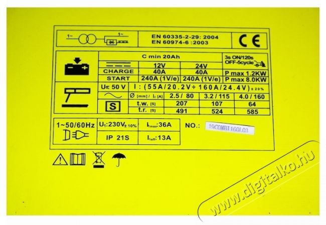 | Maximális hegesztőáram | 160 A |