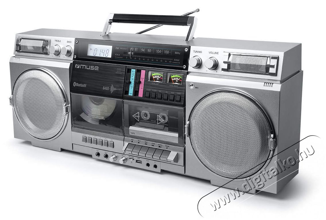 A kiváló MUSE rádiómagnó és felszereltségeA felkínált magnó felszereltsége gondoskodik a lehető legkellemesebb zenei élményről. A fejhallgatós rádió- vagy zenehallgatást a kötelező 3,5 mm-es csatlakozó teszi lehetővé. A praktikus USB bemenetnek köszönhetően feltölthetsz pl. egy mobiltelefont. A vezeték nélküli adatátvitelt a kifejezetten felhasználóbarát Bluetooth interfész biztosítja. Nem elterjedt, de praktikus a kisebb bemenet a Micro SD kártya számára. A helyzettől függően hálózati és elemes tápellátást is lehet használni, úgyhogy nem gond az elhelyezése, ráadásul bármilyen helyre, vagy választhatod az elektromos csatlakozó biztonságát. Az elsőrangú MUSE rádiómagnó mérete 271 × 670 × 171 mm (ma × sz × mé). Ezüst színben készítették. A megfelelő működéshez 8 góliát (D) fajtájú elem kell.