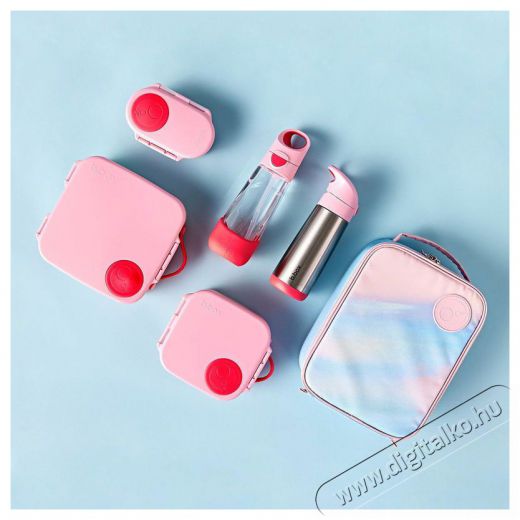 • A hasznos B.Box uzsonnás doboz kialakítását kiegészíti a szemnek kellemes kék és rózsaszín szín